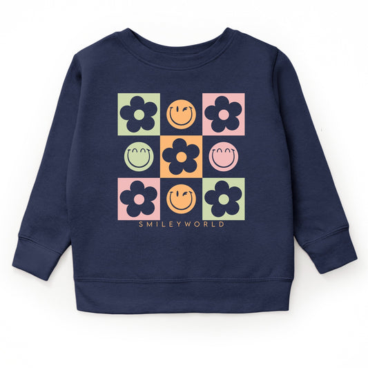SmileyWorld Checkered Floral Smile - Youth Graphic Sweatshirt