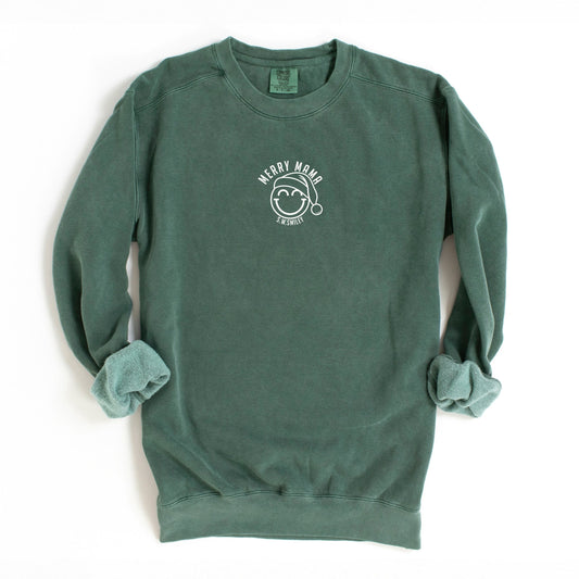 S.W.Smiley Merry Mama Outline - Women's Garment Dyed Graphic Sweatshirt