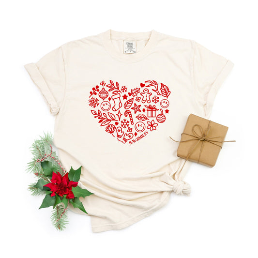 S.W.Smiley Christmas Outline Heart - Women's Garment Dyed Graphic T-Shirt