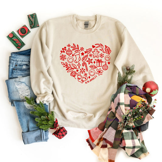 S.W.Smiley Christmas Outline Heart - Women's Graphic Sweatshirt