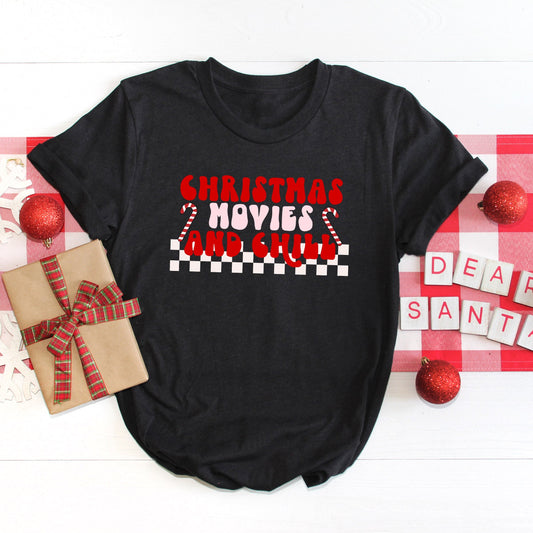 Christmas Movies And Chill Checkered | Short Sleeve Crew Neck