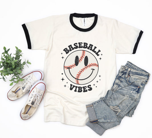 Baseball Vibes Smiley Face | Ringer Tee