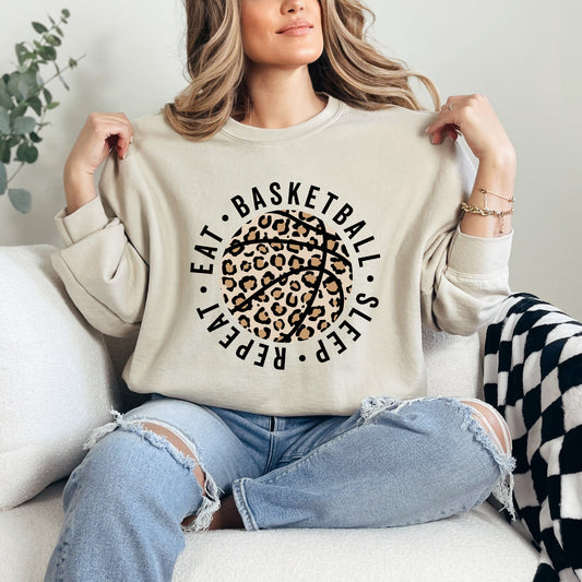 Eat Basketball Sleep Repeat Leopard Basketball | Sweatshirt