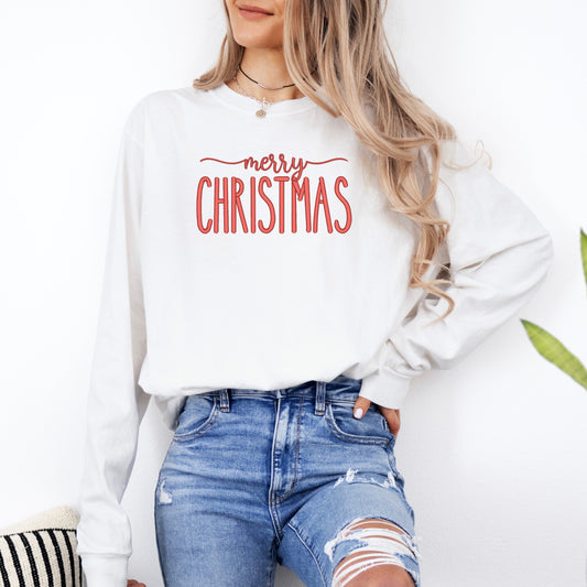 Embroidered Merry Christmas | Garment Dyed Long Sleeve