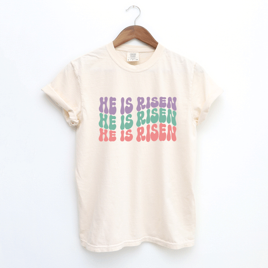 He Is Risen Stacked Wavy Colorful | Garment Dyed Tee