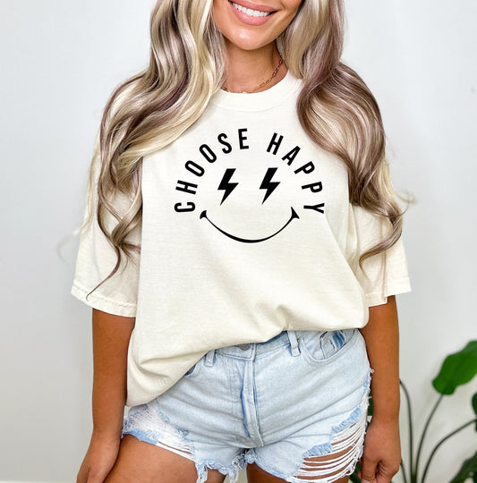 Choose Happy Lightning Eyes | Garment Dyed Short Sleeve Tee