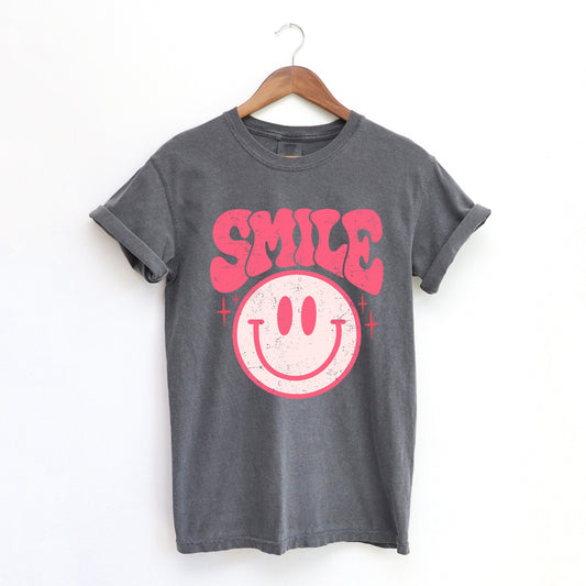 Pink Smiley Distressed | Garment Dyed Tee