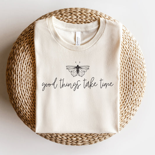 Good Things Take Time Butterfly | Short Sleeve Crew Neck