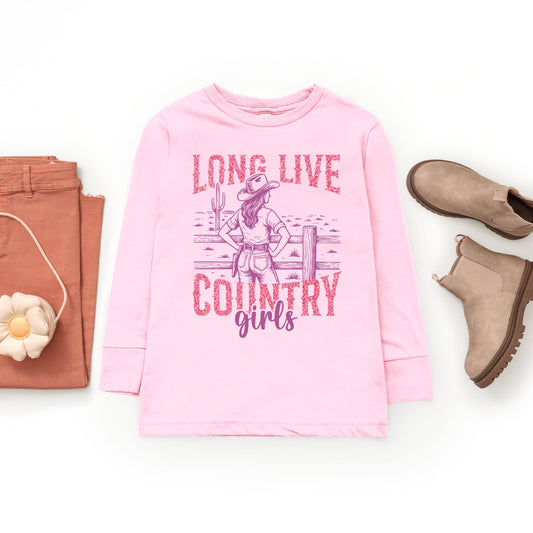 Long Live Country Girls Glitter - Youth Long Sleeve Graphic T-Shirt