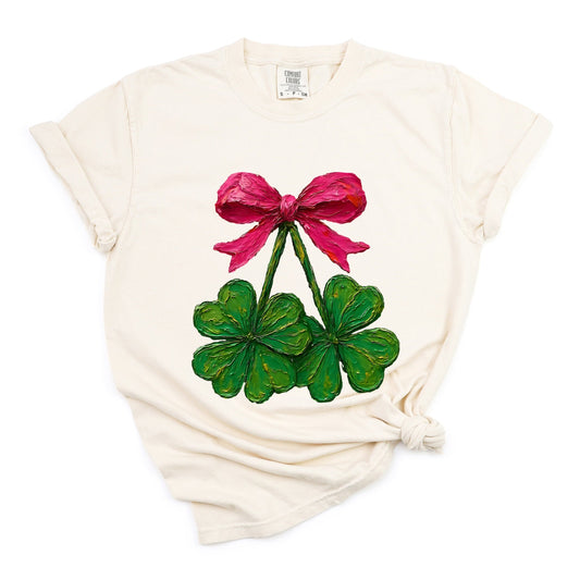 Clover Cherries Paint - Women's Garment Dyed Graphic T-Shirt