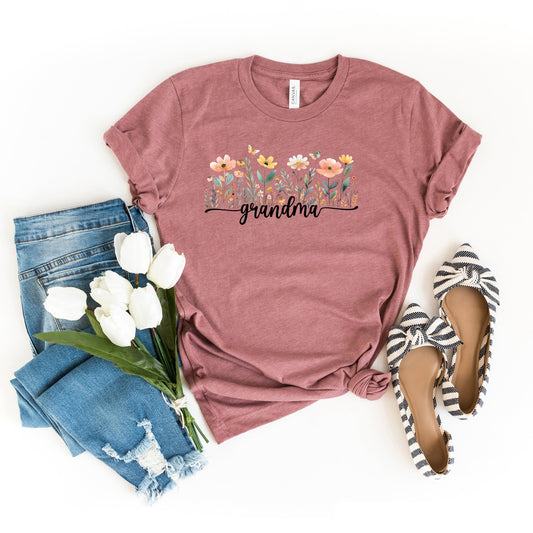 Grandma Watercolor Flowers - Women's Short Sleeve Graphic T-Shirt