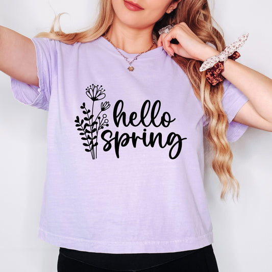 Hello Spring Flowers | Relaxed Fit Cropped Tee