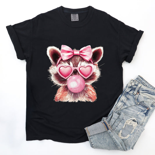 Valentine Raccoon With Bubblegum - Women's Garment Dyed Graphic T-Shirt