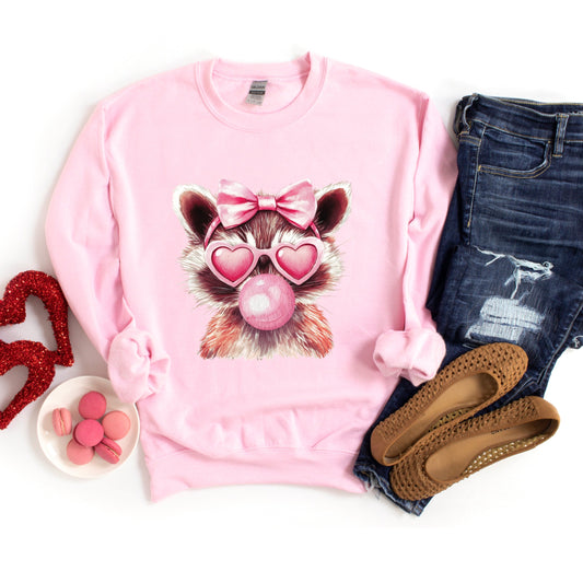 Valentine Raccoon With Bubblegum - Women's Graphic Sweatshirt