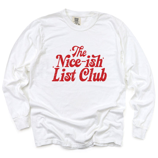 The Nice-ish List Club Distressed - Women's Garment Dyed Long Sleeve Graphic T-Shirt
