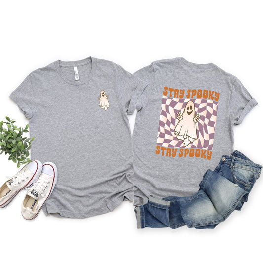 Checkered Stay Spooky Ghost | Front and Back Short Sleeve Crew Neck