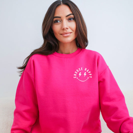 Embroidered Choose Happy Lightning Smiley Face | Sweatshirt