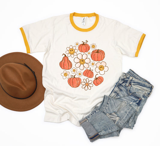 Circle Pumpkin Flowers | Ringer Tee
