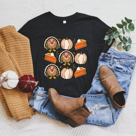 Turkey Pumpkin Pie Grid | Short Sleeve Crew Neck