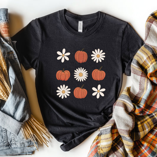 Pumpkin Daisy Checkered | Short Sleeve Crewneck