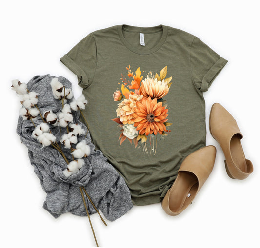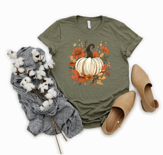 Fall Pumpkin Floral | Short Sleeve Crew Neck