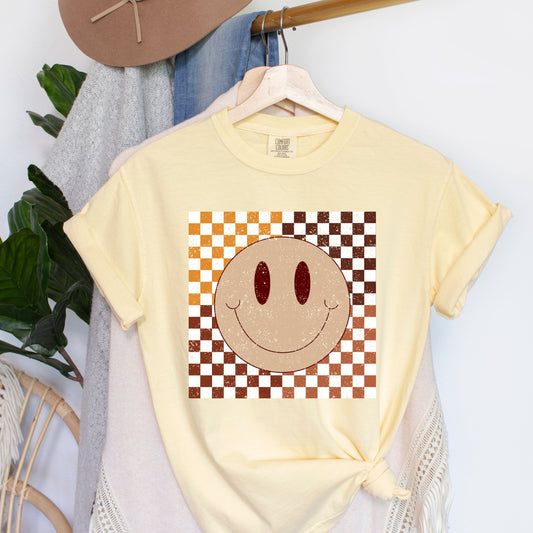 Fall Checkered Smiley | Garment Dyed Tee