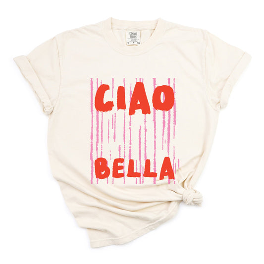 Ciao Bella Stripes - Women's Garment Dyed Graphic T-Shirt