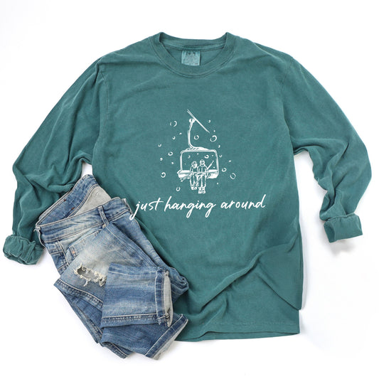 Just Hanging Around Ski Lift - Women's Garment Dyed Long Sleeve Graphic T-Shirt