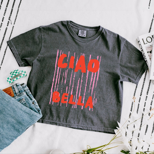 Ciao Bella Stripes - Women's Boxy Crop Top Graphic T-Shirt