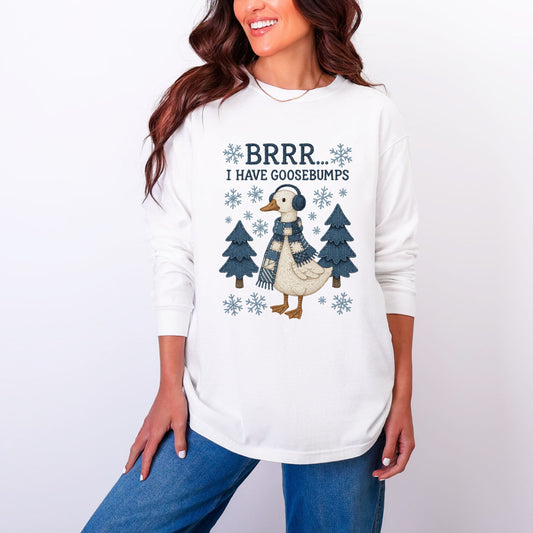 Brrr... I Have Goosebumps - Women's Garment Dyed Long Sleeve Graphic T-Shirt