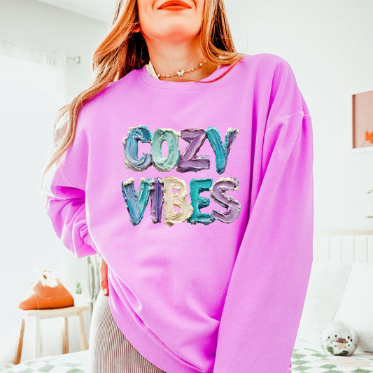 Cozy Vibes Winter Paint Print - Women's Lightweight Garment Dyed Sweatshirt