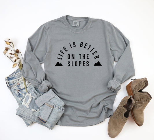 Better On The Slopes Mountains | Garment Dyed Long Sleeve