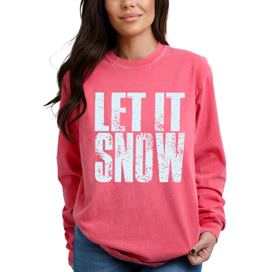 Let It Snow Block Distressed - Women's Garment Dyed Long Sleeve Graphic T-Shirt