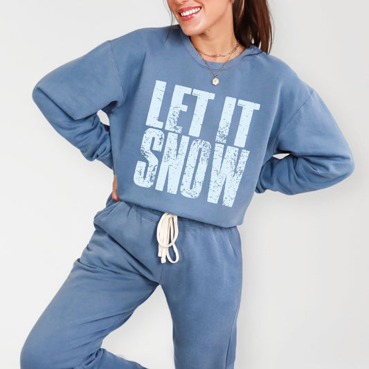 Let It Snow Block Distressed - Women's Lightweight Garment Dyed Sweatshirt
