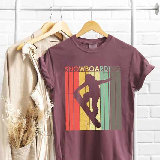 Snowboarding Silhouette Colorful Lines - Women's Garment Dyed Graphic T-Shirt