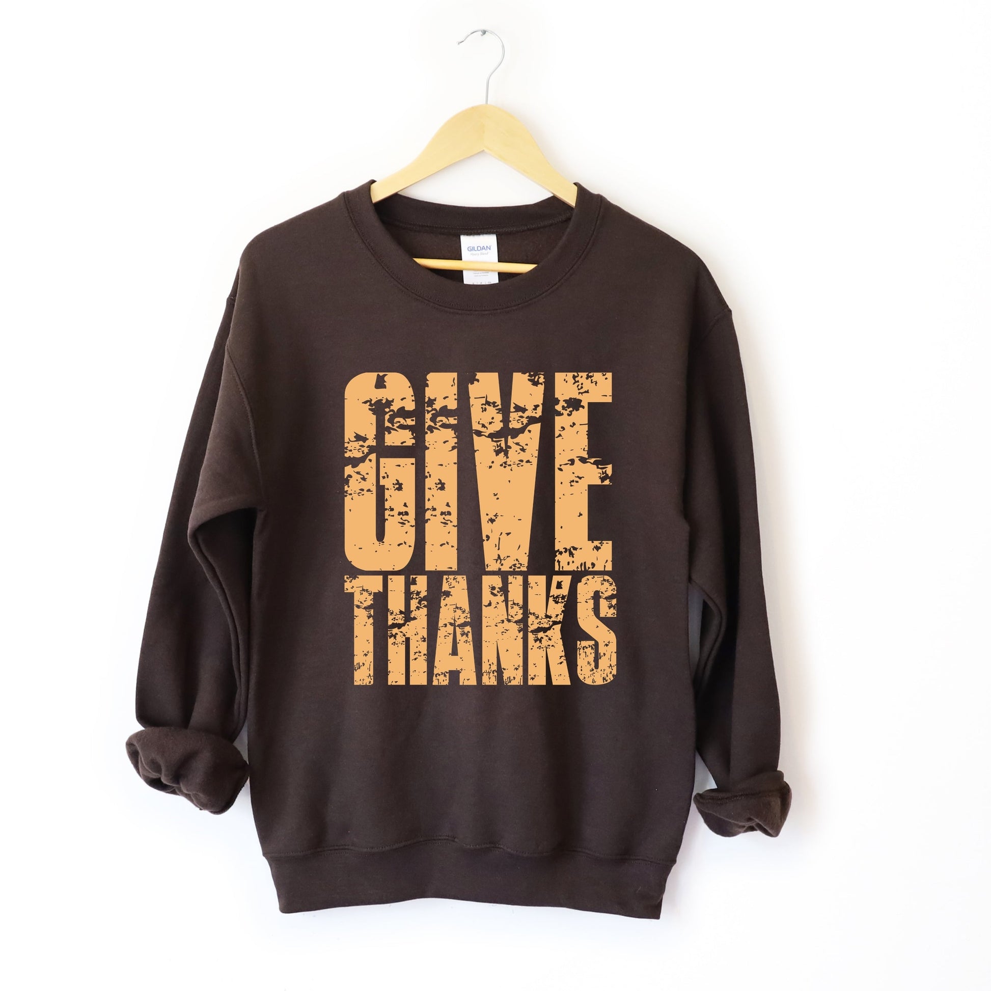 Give Thanks Block Distressed - Women's Graphic Sweatshirt