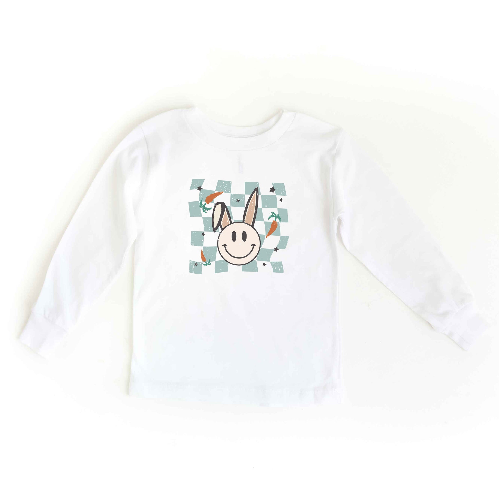 Checkered Smiley Easter Bunny | Youth Long Sleeve Tee