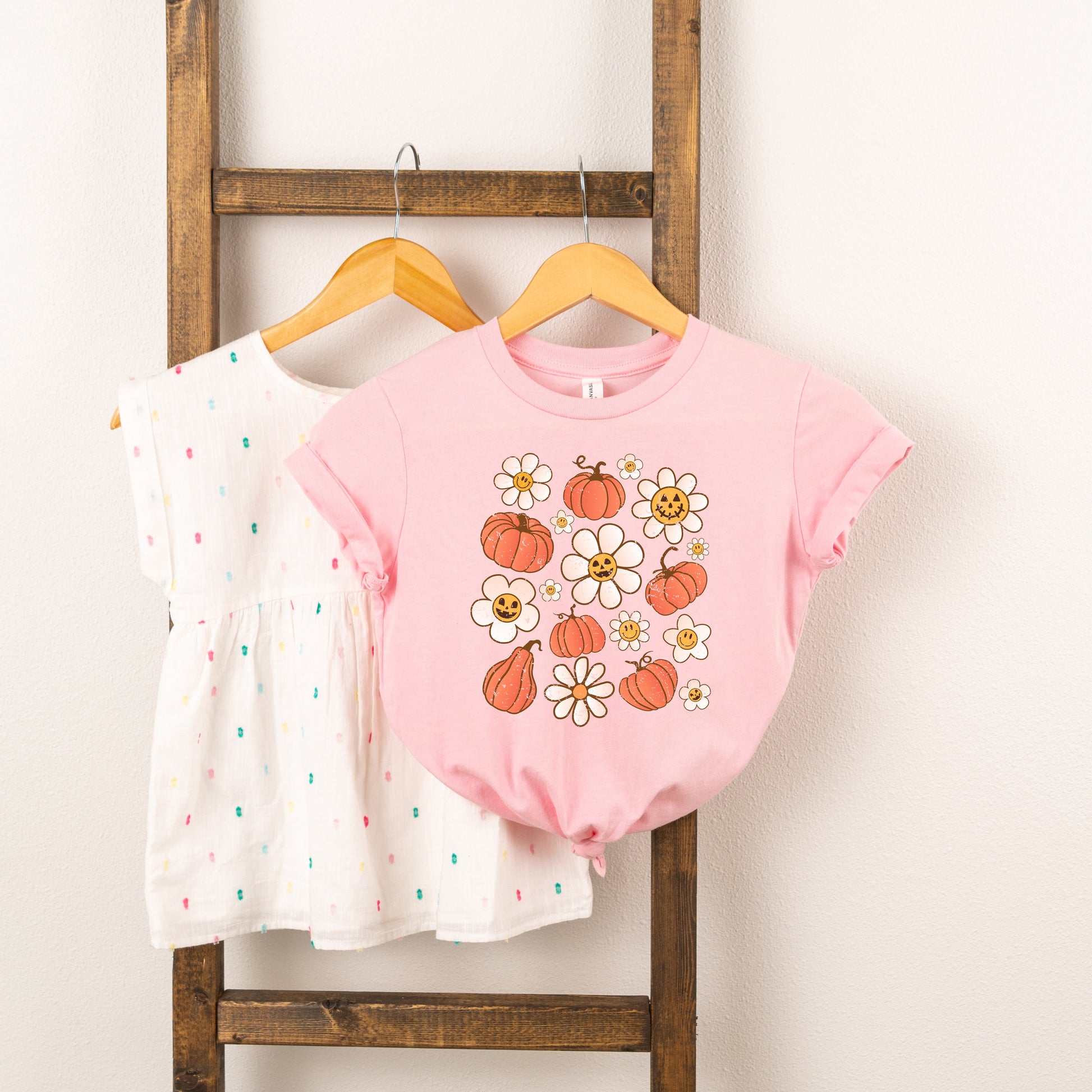 Distressed Flowers And Pumpkins | Toddler Short Sleeve Crew Neck