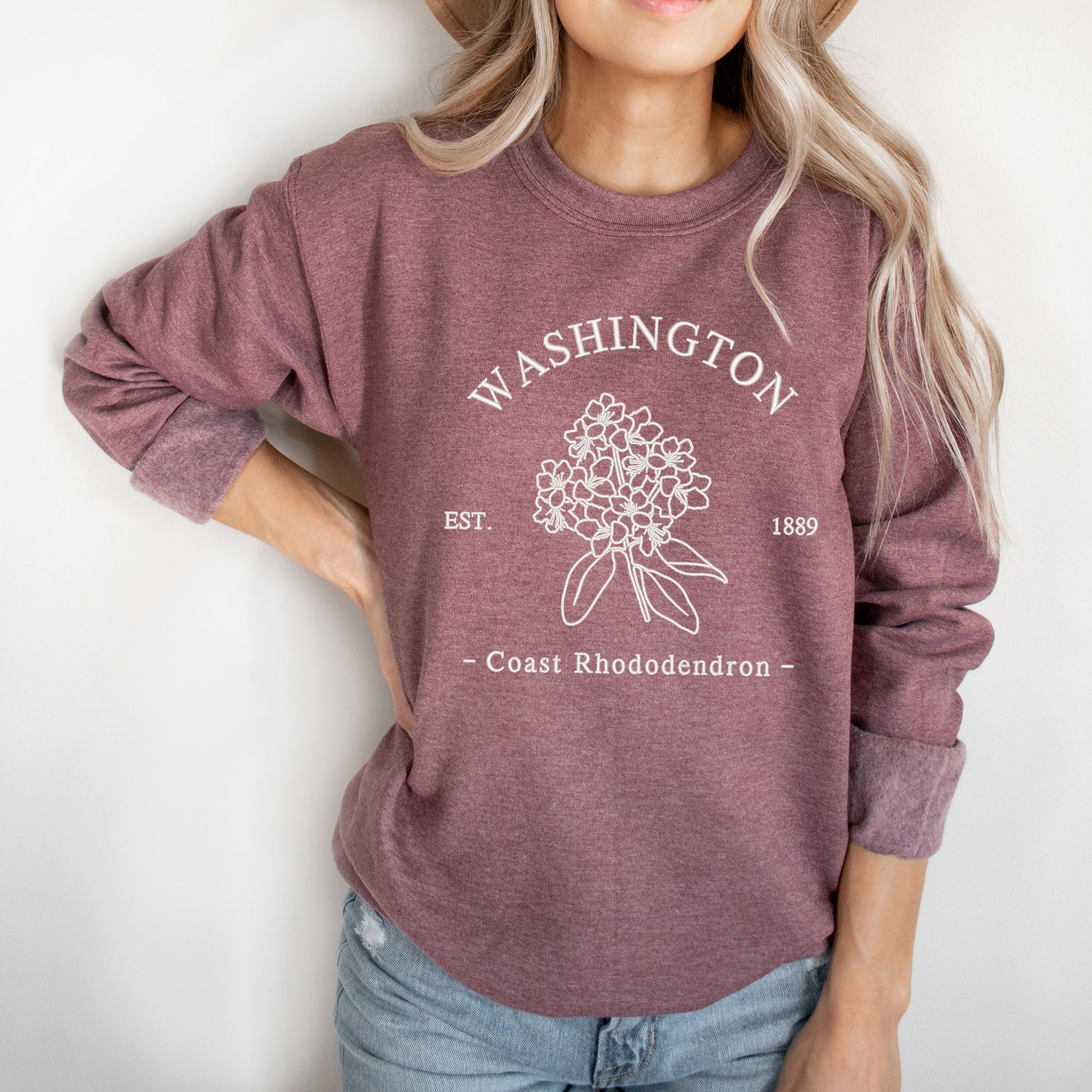 Embroidered Washington Coast Flower | Sweatshirt