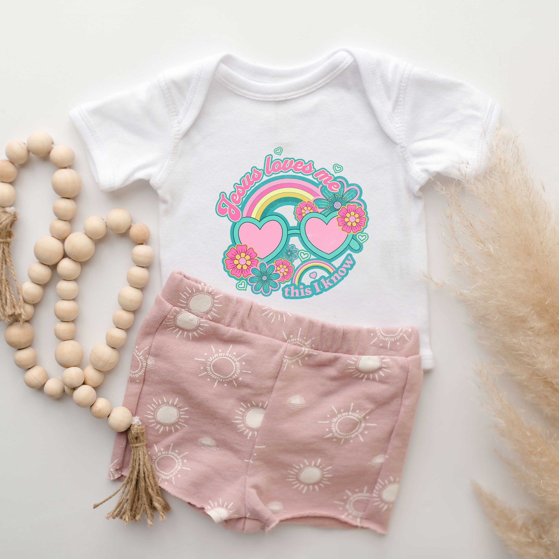 Jesus Loves Me Sunglasses | Baby Graphic Short Sleeve Onesie