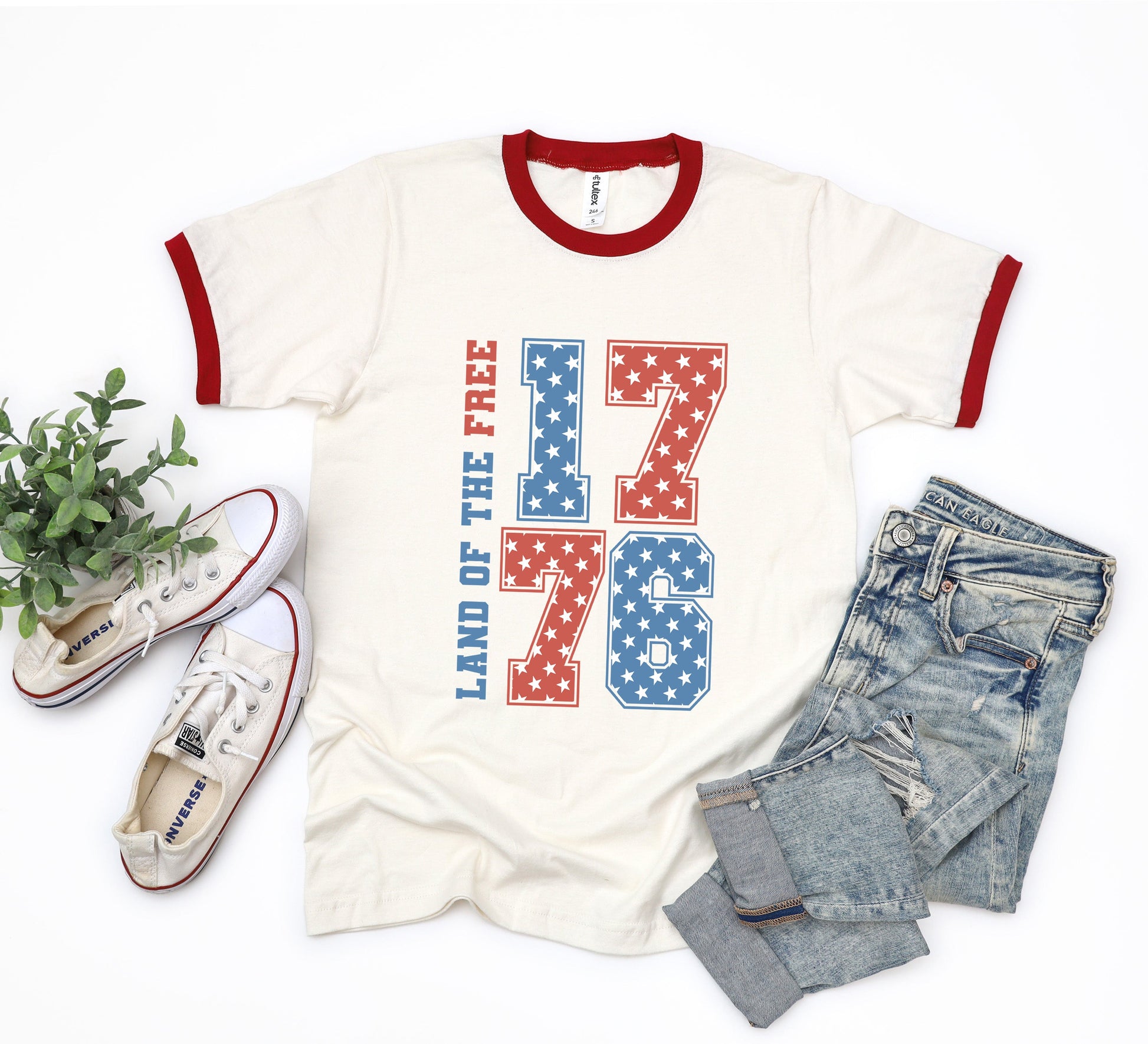 Land Of The Free Retro Stars | Ringer Tee