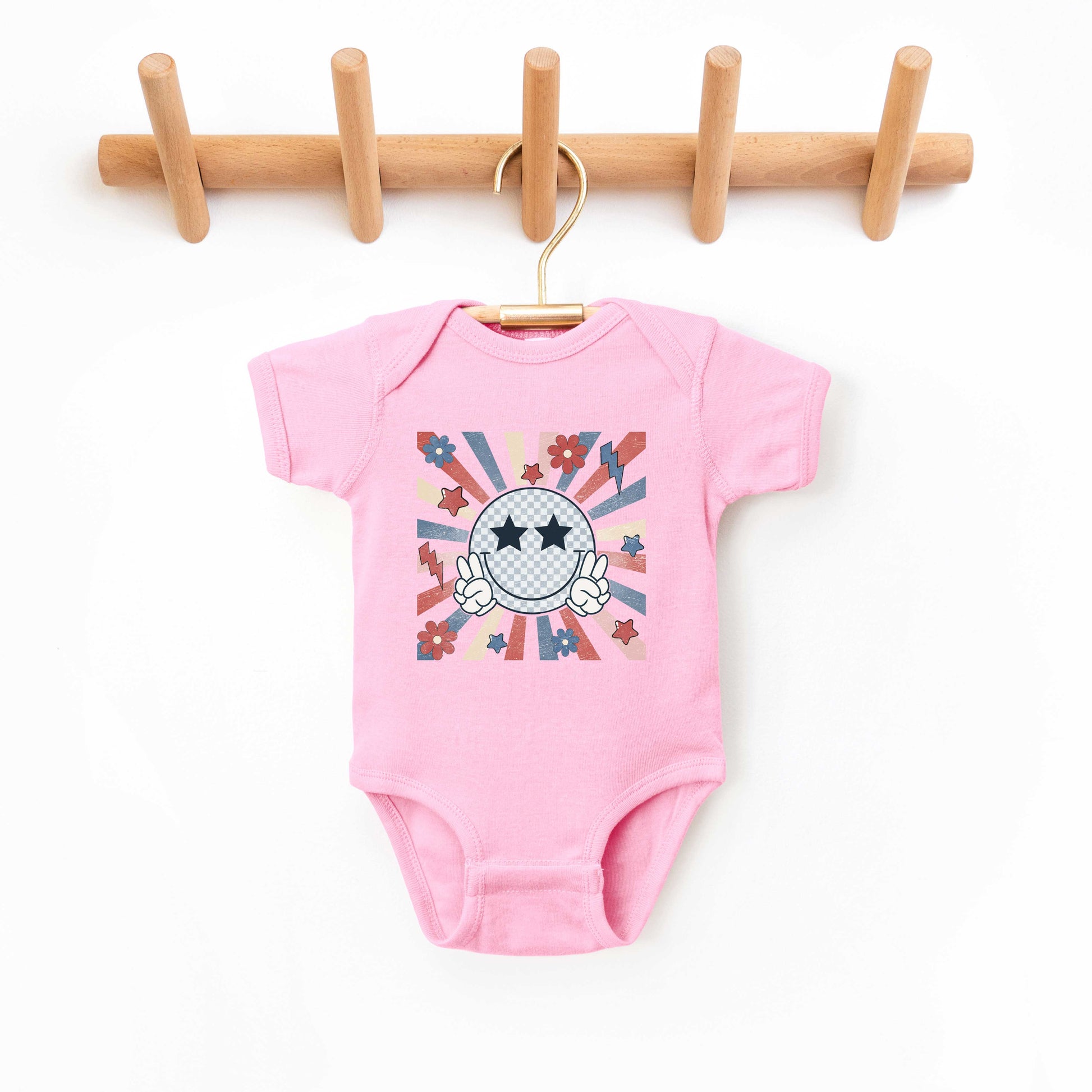 Smiley Peace Sign Flowers | Baby Graphic Short Sleeve Onesie
