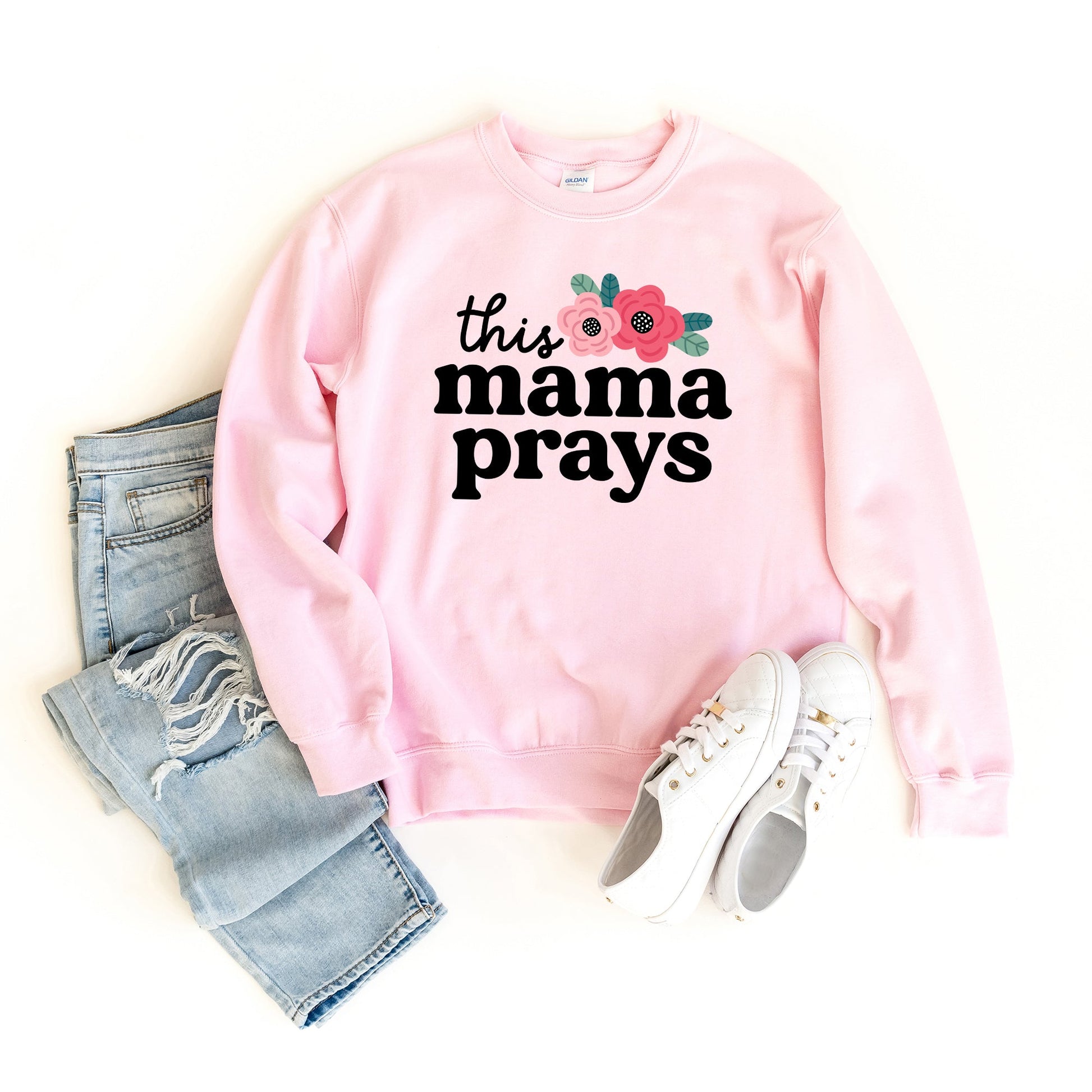 This Mama Prays Flowers | Sweatshirt
